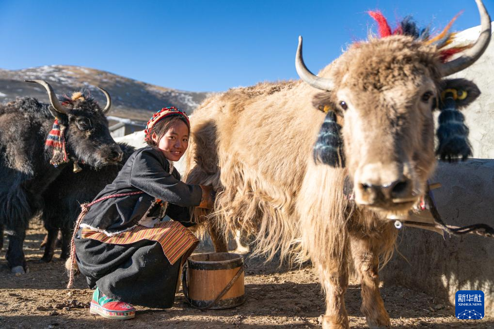這是在參加擠牛奶比賽的思古龍村村民(1月13日攝)。新華社發(fā)(丁增尼達 攝)