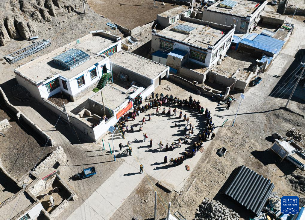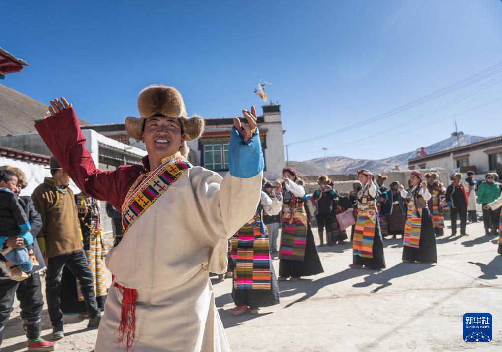 思古龍村的村民們在跳鍋莊舞(1月13日攝)。新華社發(fā)(丁增尼達 攝)