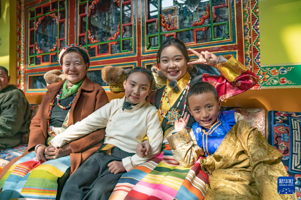 后來我們又去莫拉家拍攝了團圓飯、換新藏裝等場景。拍攝時,我需要穿藏裝和巴桑莫拉的女兒進行互動,而當天日喀則的氣溫已經(jīng)到了零下,她發(fā)現(xiàn)我的雙手冰涼后,全程都用自己的手捂著我的手,想讓我暖和一點。拍攝結(jié)束以后,小朋友們也圍在我身邊抱著我,想用自己的方式給我傳遞一點溫暖。