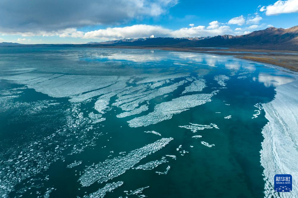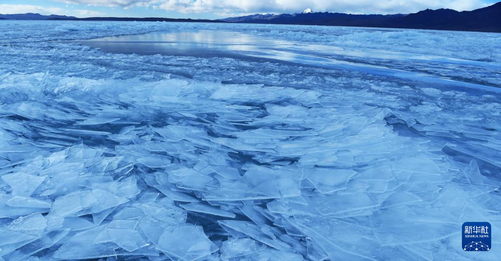 瑪旁雍錯湖面上的冰像碎玻璃一樣透亮(1月29日攝)。新華社記者 關明輝 攝