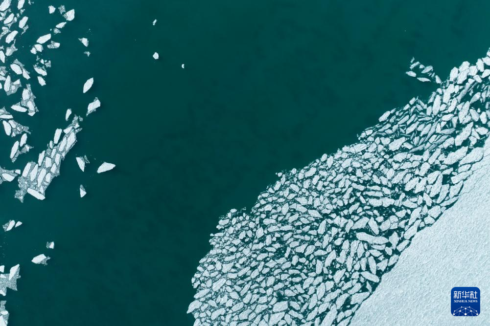 瑪旁雍錯湖面上的冰堆積在一起,呈現出各式各樣的造型(1月29日攝,無人機照片)。新華社發(fā)(旦增努布攝)