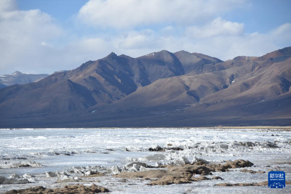 瑪旁雍錯湖面上的冰堆積在一起,形似波浪(1月29日攝)。新華社記者 關明輝 攝
