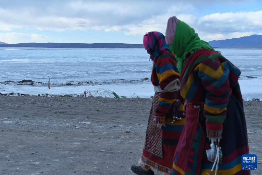 兩位老人從瑪旁雍錯岸邊走過(1月29日攝)。新華社記者 劉文博 攝