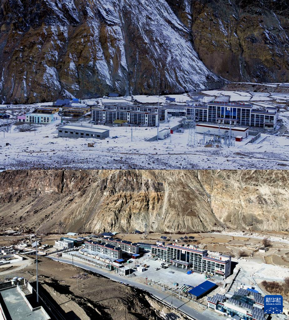 拼版照片:上圖是2019年1月8日拍攝的楚魯松杰鄉(xiāng)政府(新華社記者陳尚才攝);下圖是2024年1月13日拍攝的楚魯松杰鄉(xiāng)政府(新華社記者陳澤鵬攝)?! ?/p>