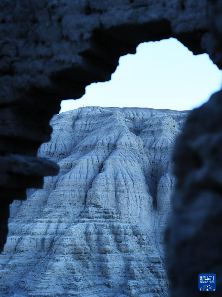 這是透過古格王國(guó)遺址殘?jiān)臄z的土林(1月30日攝)。新華社記者 關(guān)明輝 攝