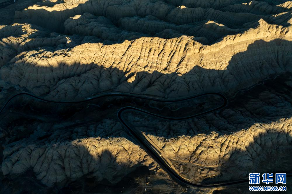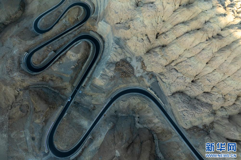 1月31日拍攝的札達(dá)土林和公路(無人機(jī)照片)。新華網(wǎng) 旦增努布 攝