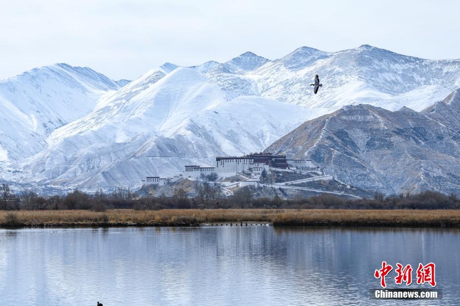 2月15日,西藏拉薩,雪后的拉薩周圍群山白雪皚皚,布達拉宮風景如畫。中新社記者 貢嘎來松 攝