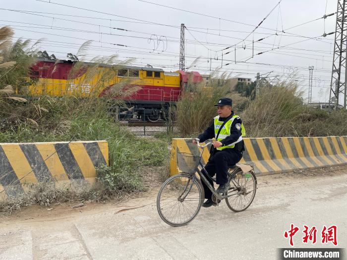 今年60歲的袁倫,是南寧鐵路公安局北海公安處欽州港站派出所的一名線路民警。2024年春運,臨近退休的袁倫依舊騎著他心愛的自行車,穿梭在鐵路沿線,站好他鐵警生涯中“最后一班春運崗”。