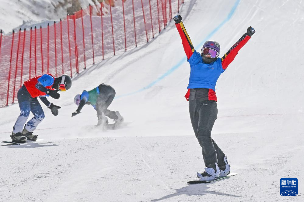 2月19日,在第十四屆全國冬季運動會單板滑雪青年組女子障礙追逐比賽中,西藏隊選手擁青拉姆、湖北隊選手楊禮妍和遼寧隊選手馮賀分獲前三名。新華社記者 李志鵬 攝