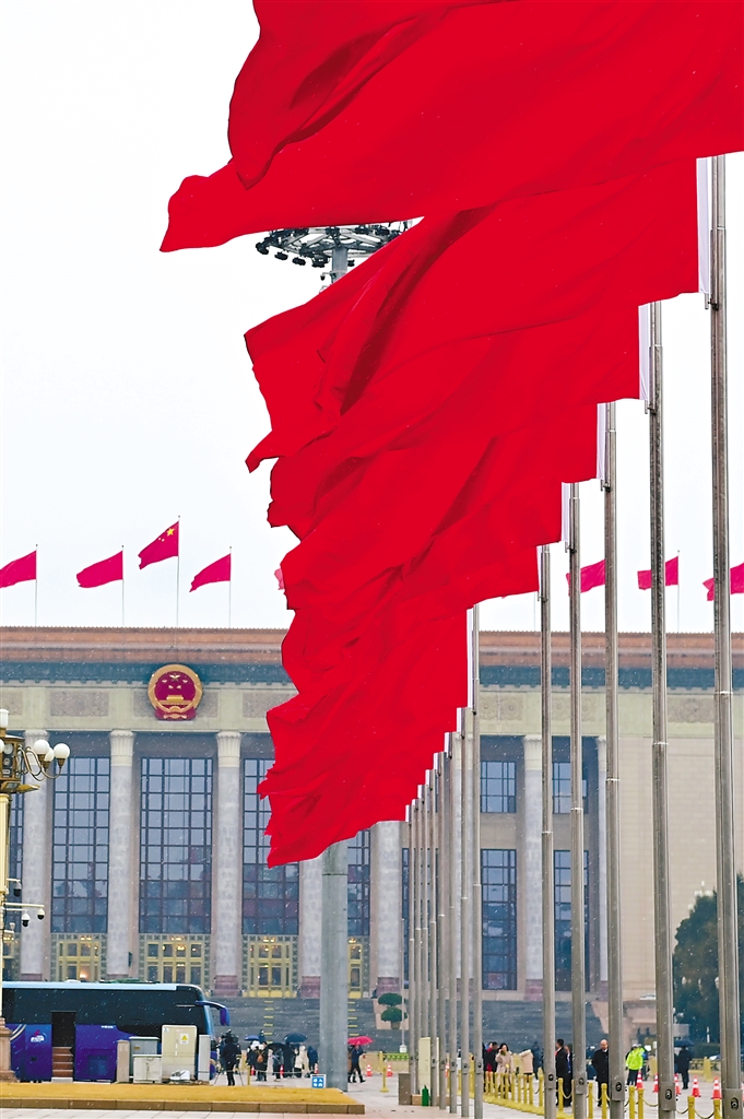 圖為全國(guó)人大代表聆聽政府工作報(bào)告后,滿懷信心走出人民大會(huì)堂。記者 旦增西旦 攝