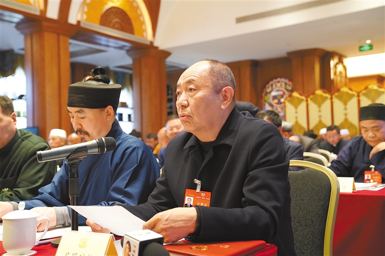 住藏全國政協(xié)委員尼瑪瓊拉,在宗教界小組討論中踴躍發(fā)言。