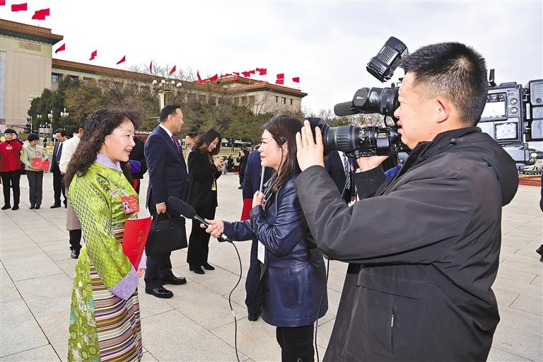 圖西藏全國人大代表白瑪措在接受區(qū)內媒體采訪。