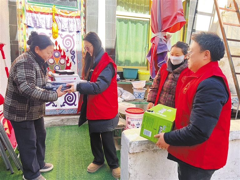 在嘎巴村熱組的困難戶(hù)邊巴家中,志愿者們?cè)谒蜕狭藢?shí)用的慰問(wèn)品后,為他詳細(xì)解讀了與他生活息息相關(guān)的醫(yī)保等相關(guān)政策。志愿者的關(guān)懷和服務(wù)讓他感動(dòng),邊巴說(shuō):“你們就是當(dāng)代的活雷鋒,謝謝你們!”