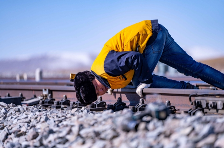 在唐古拉山,天窗無論早晚——從滿天星斗到晨光熹微,只要是需要施工的時候,馬祎俊都會帶著工人們奮戰(zhàn)在鐵軌之上?!盀榱俗岃F路更加平穩(wěn),我們多辛苦都值得?!彼f。