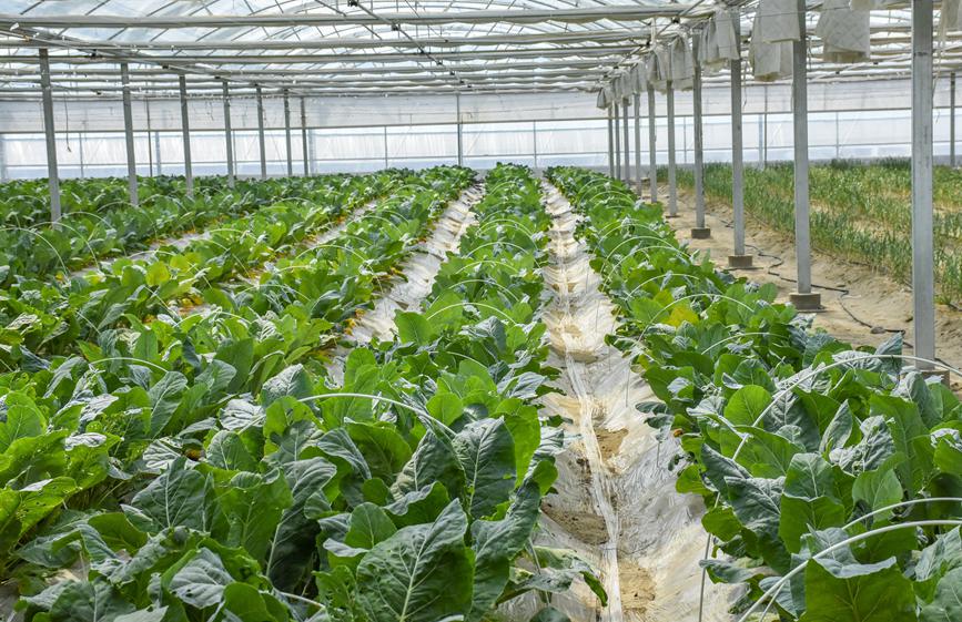 戈壁設(shè)施農(nóng)業(yè),不是簡(jiǎn)單地在戈壁灘上開(kāi)墾土地發(fā)展農(nóng)業(yè),而是要將光、熱、水、肥、土壤等一系列生產(chǎn)要素進(jìn)行合理配置。綠之源的規(guī)劃建設(shè),走出了一條節(jié)地、節(jié)水、高效循環(huán)的戈壁生態(tài)農(nóng)業(yè)發(fā)展路子。節(jié)地,充分利用了閑置的戈壁荒灘資源,不占耕地,有效解決了菜糧爭(zhēng)地矛盾;節(jié)水,日光溫室作物生產(chǎn),全部配套了膜下滴灌技術(shù),使有限的水資源得到了高效利用;高效循環(huán),溫室采取“套種”種植模式,讓土地不空茬,連作多種作物,有效提高溫室利用率,實(shí)現(xiàn)“全年種植、全年采收”,改善了土壤沙化環(huán)境,提升了土壤地力,更是提高了蔬菜品質(zhì)。