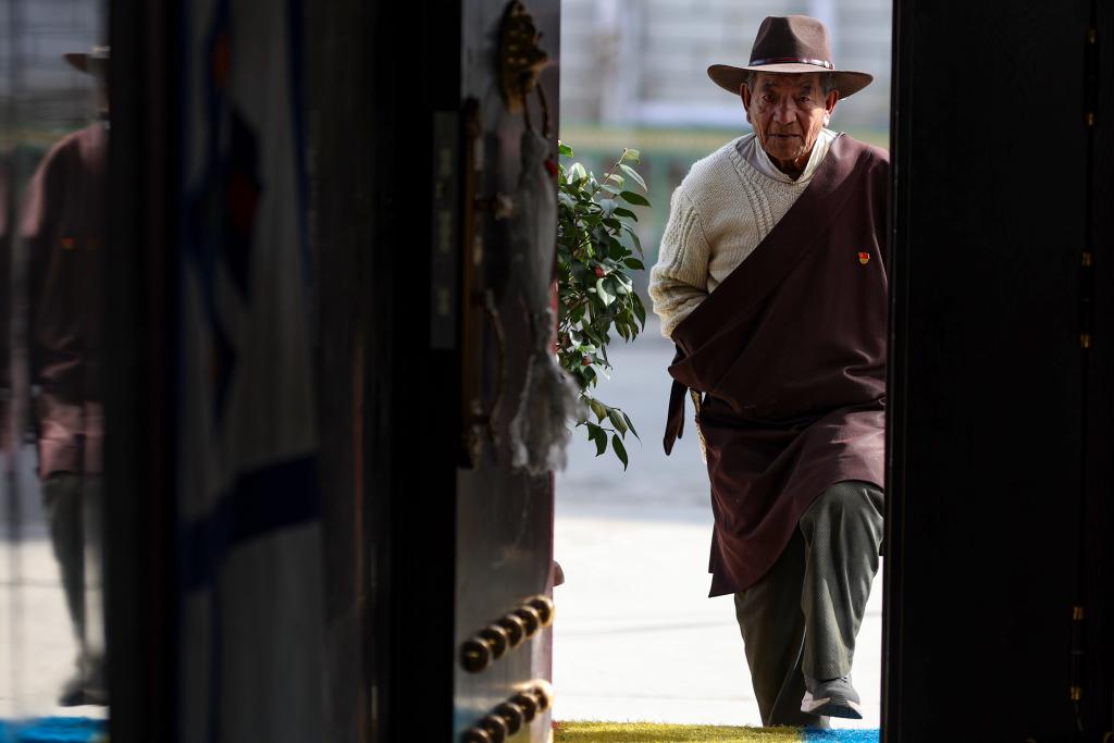 扎巴旺旦老人回到家中(3月11日攝)。新華社記者 姜帆 攝