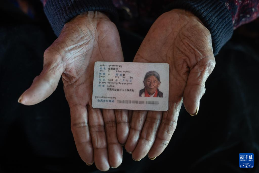 格桑曲珍展示自己的身份證(3月16日攝)。新華社記者 旦增尼瑪曲珠 攝