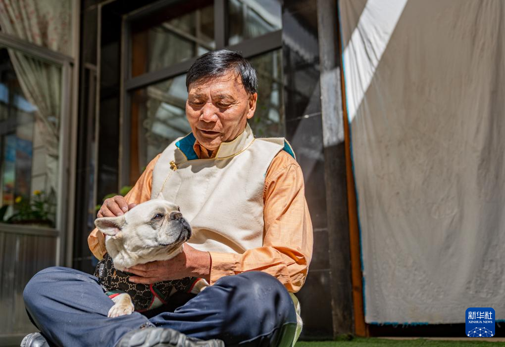 2024年3月28日 普次仁在家中和小狗玩耍(3月23日攝)。新華社記者 丁增尼達(dá) 攝