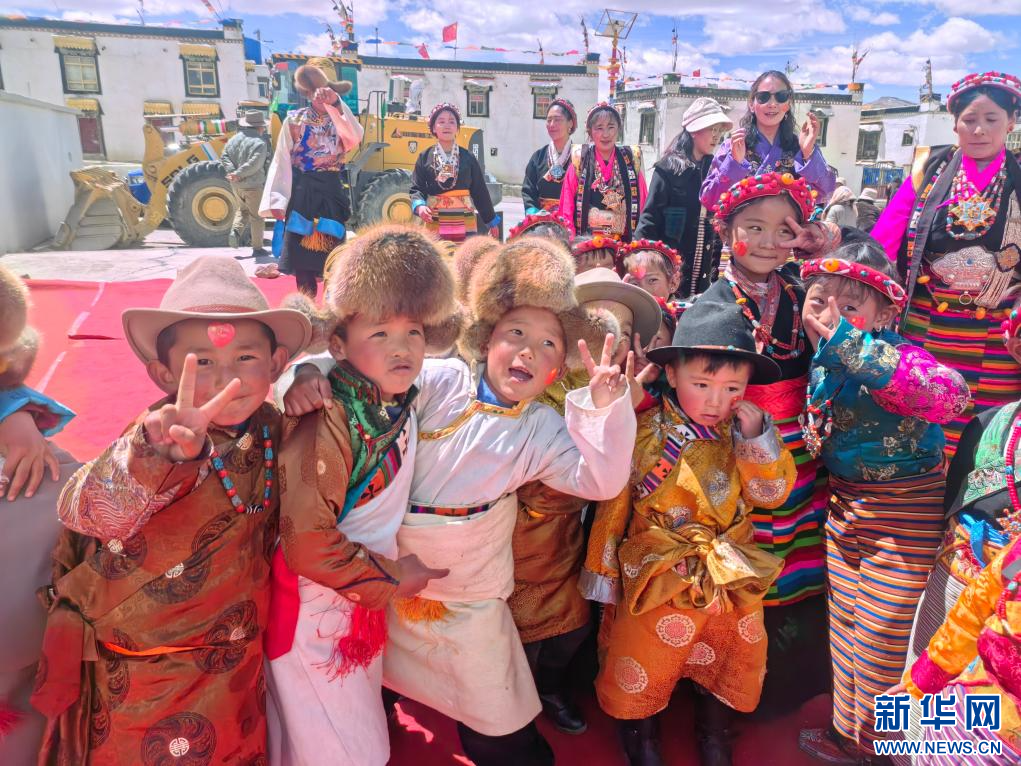 龍中鄉(xiāng)的孩子們穿上民族服飾參加紀念活動。