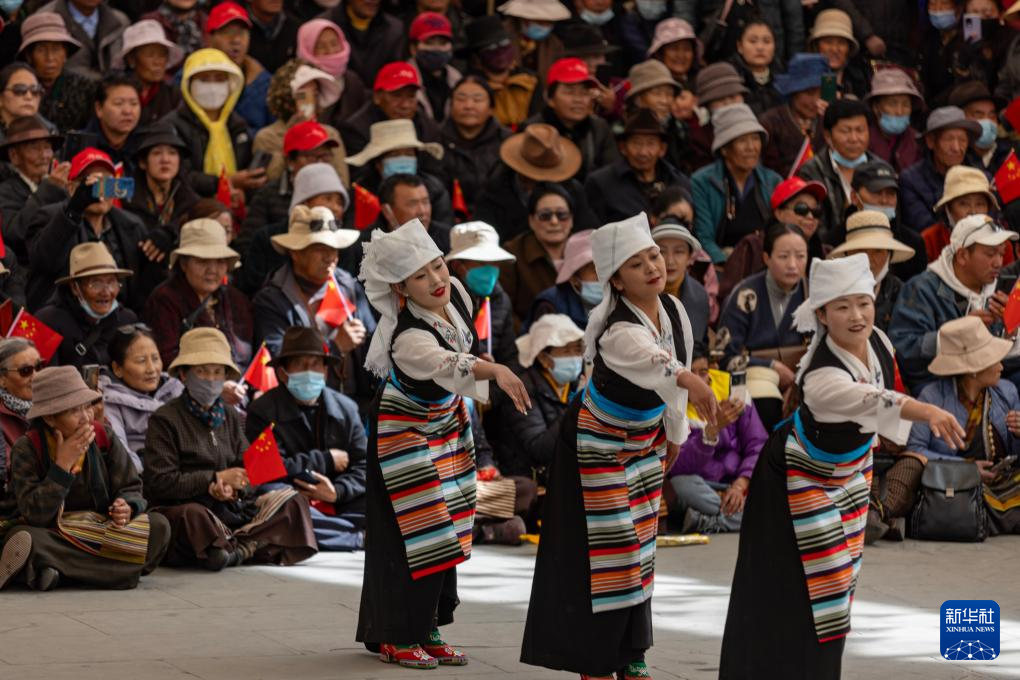 3月28日,群眾在拉薩市宗角祿康公園內(nèi)觀看文藝演出,慶祝西藏百萬農(nóng)奴解放65周年。新華社記者 姜帆 攝