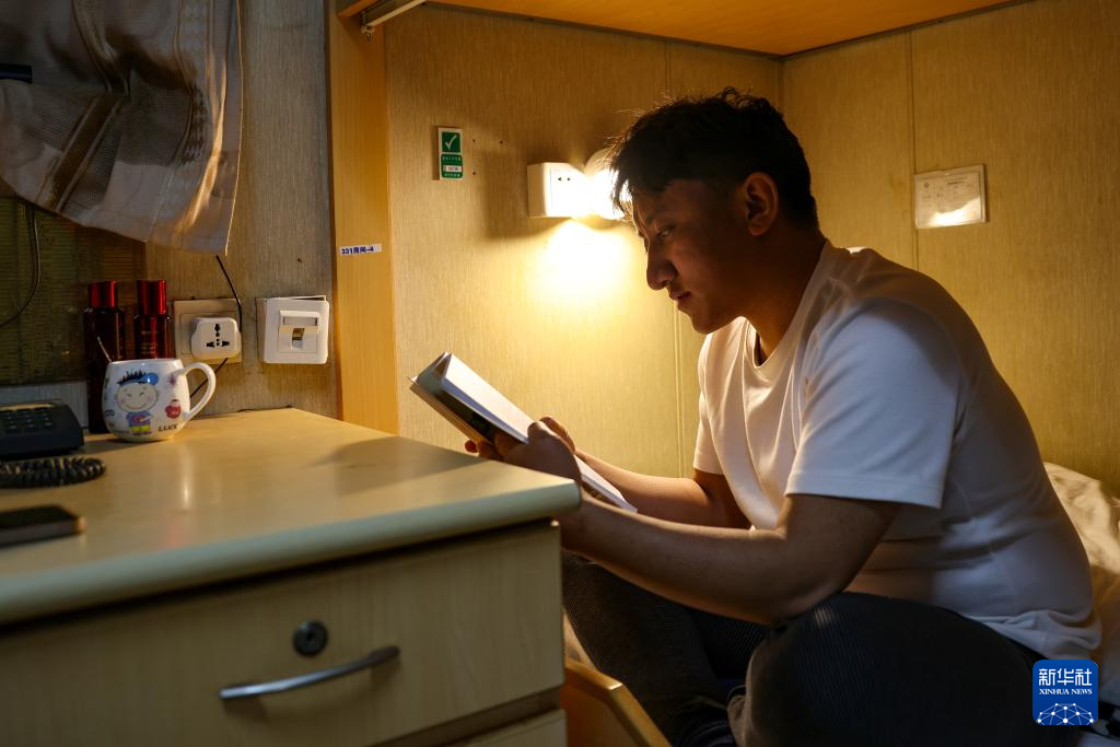 這時的“渤海世紀號”已經(jīng)覆蓋了網(wǎng)絡(luò),強巴可以隨時和家人聯(lián)系,親人們的鼓勵和同事們的關(guān)心給了他堅持下來的力量。工作的第一年,強巴大部分空閑時間都用來學(xué)習(xí),提高專業(yè)技能,趕上同事們的步伐。他也漸漸適應(yīng)了海上的生活,還在船上的健身房鍛煉身體。現(xiàn)在,他更喜歡閱讀?!拔艺跍蕚渲屑壊僮鞴べY格的考試,空閑的時候在讀藏語版的《哈佛凌晨四點半》,很勵志?!彼f。