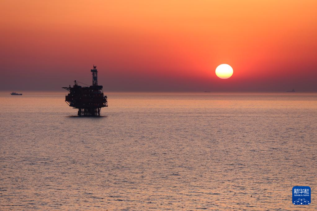 晨光中的秦皇島32-6油田(3月8日攝)。新華社記者 姜帆 攝