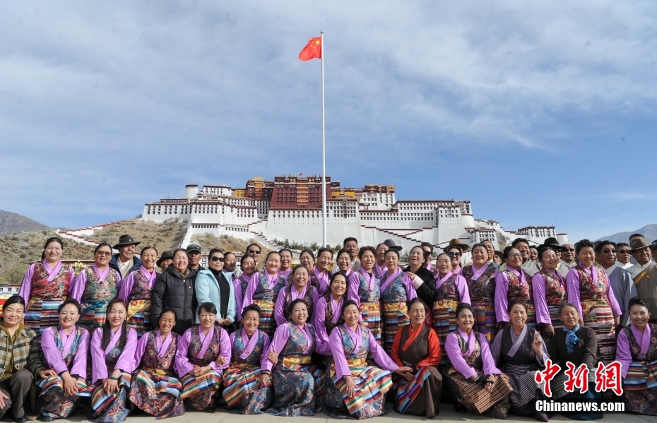 3月28日,西藏各族各界人士聚集在拉薩布達(dá)拉宮廣場(chǎng),升國(guó)旗、唱國(guó)歌,參加西藏百萬農(nóng)奴解放65周年紀(jì)念活動(dòng)。圖為民眾身著盛裝在布達(dá)拉宮廣場(chǎng)留影。中新社記者 貢嘎來松 攝