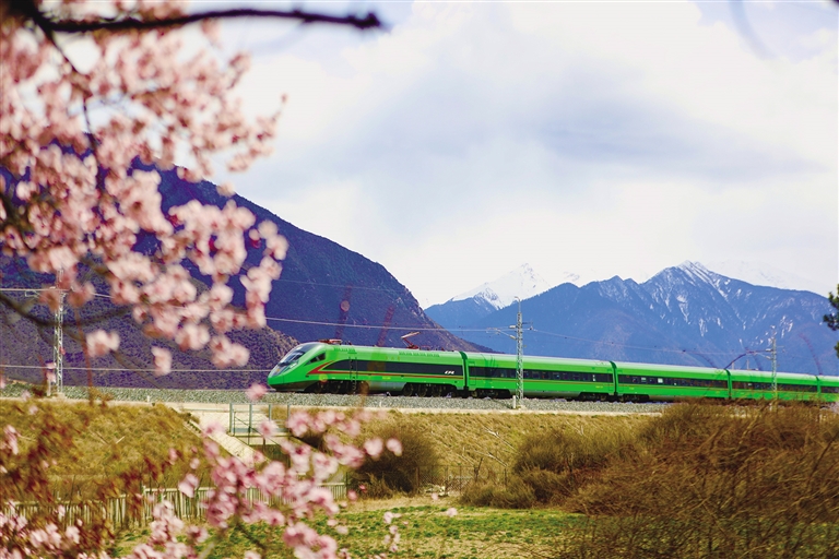 自2021年拉林鐵路開通以來,“搭乘復(fù)興號去看桃花”已成為更多游客的選擇。作為連接“日光城”拉薩和“雪域江南”林芝的“新天路”,拉林鐵路串起了西藏東南地區(qū)的“精華”風(fēng)景,乘坐拉林鐵路列車,不僅能體驗(yàn)到世界最高海拔運(yùn)行的動(dòng)車速度,還可以透過車窗盡情欣賞雅魯藏布江兩岸壯觀的桃花林,飽覽雪域高原的壯麗美景。
