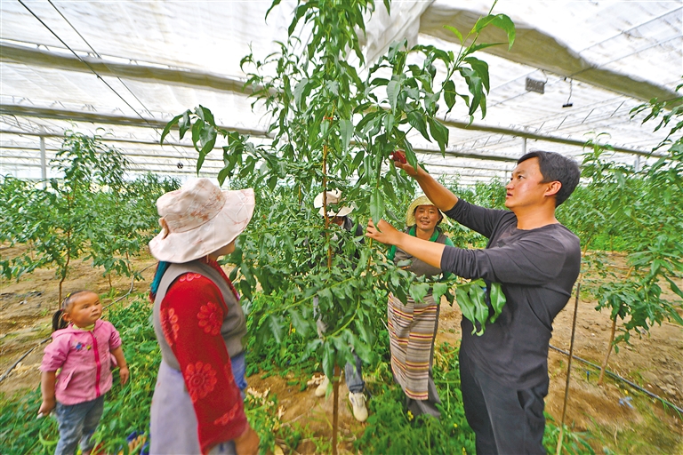 “以前,一家人靠種植青稞為生,由于收入上不去,日子過(guò)得并不富?!,F(xiàn)在好了,自從承包蔬菜大棚搞經(jīng)濟(jì)作物以來(lái),收入一年比一年好。我承包的兩座蔬菜大棚主要種植西紅柿和黃瓜,從選種到收獲,鄉(xiāng)里的‘點(diǎn)對(duì)點(diǎn)’干部都會(huì)全程指導(dǎo),手把手教我種植技術(shù),年收入有10多萬(wàn)元?!甭櫽翊宕迕衿詹即稳矢嬖V記者,隨著收入增加,一家人的生活質(zhì)量也上去了,他對(duì)自己走靠搞經(jīng)濟(jì)作物發(fā)家致富這條路信心十足。