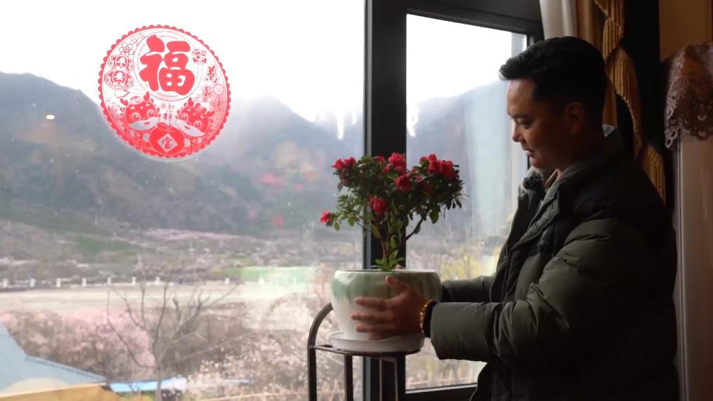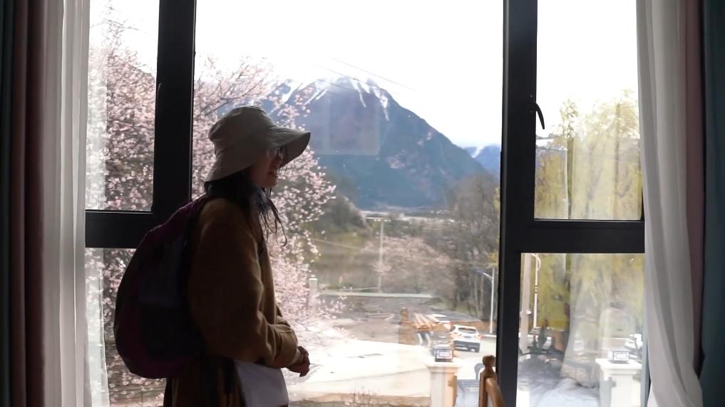 下午4點(diǎn),林芝市波密縣傾多鎮(zhèn)古通村,遠(yuǎn)來的游客入住到村民洛松頓珠開辦的民宿。寬敞的客廳里,藏式家具整齊大氣,窗外古老的桃花樹隨風(fēng)散落著陣陣花雨。