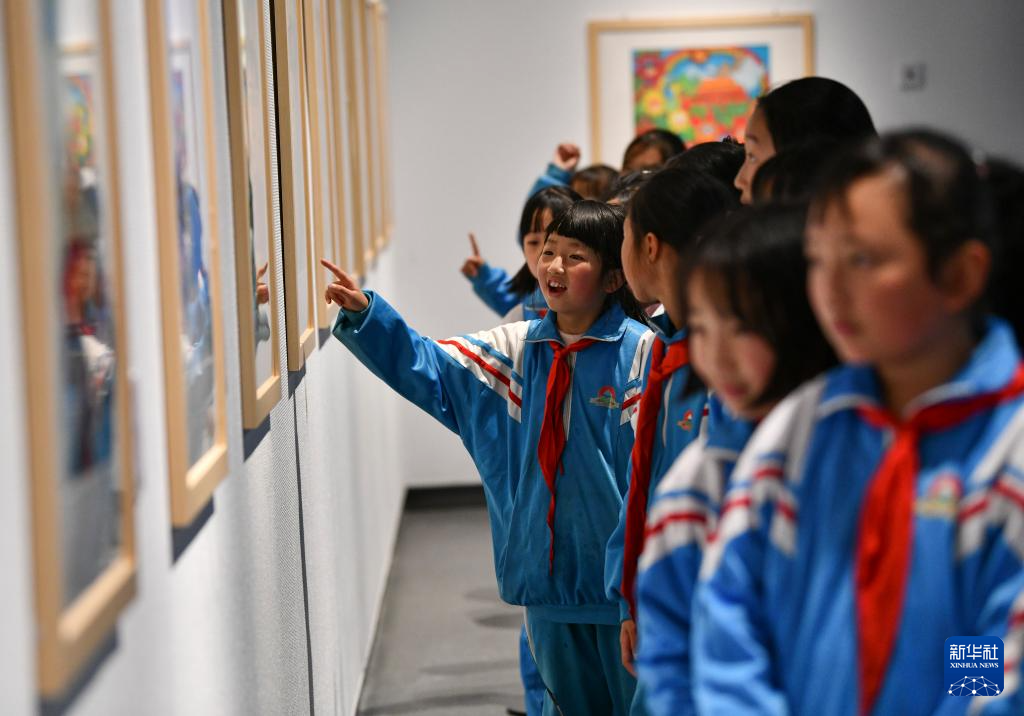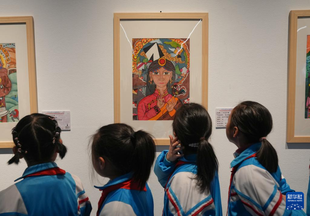 4月19日,拉薩市的小學(xué)生在參觀畫展。新華社記者 晉美多吉 攝
