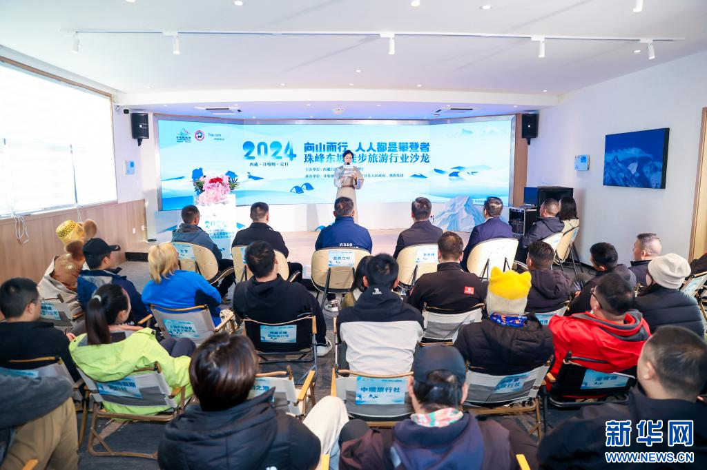 “向山而行·人人都是攀登者”珠峰東坡徒步旅游行業(yè)沙龍活動現(xiàn)場(4月18日攝)。新華社發(fā)