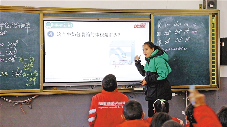 圖為阿里地區(qū)陜西實驗學校教師利用多媒體平臺為學生授課。記者 洛桑旦增 達珍 永青 攝