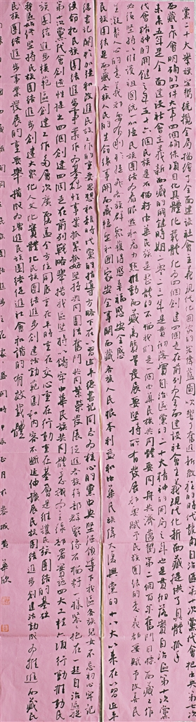 漢文書法二等獎作品《西藏新聞網(wǎng)刊民族團結(jié)文章選抄》。作者 黃華欣