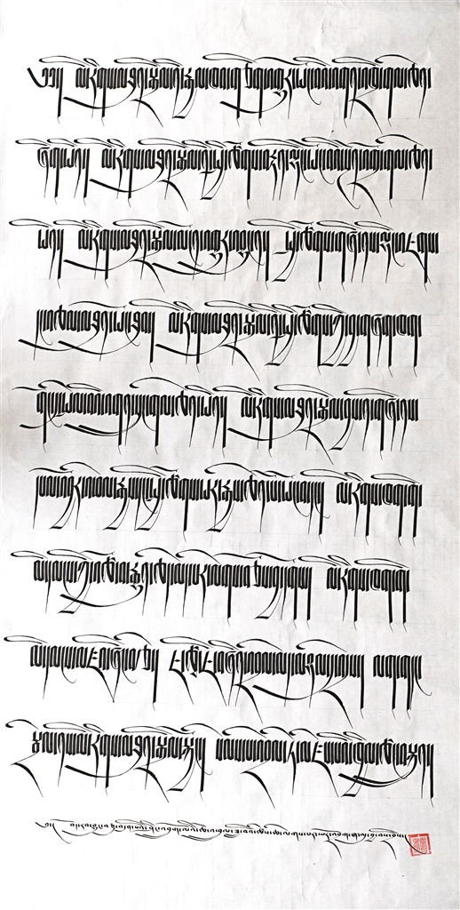 大賽漢文書法終評組評委、中國書協(xié)會員、西藏書協(xié)副主席張沖說:“此次展覽投稿作品數(shù)量多,總體質(zhì)量與前幾屆相比有所提高,投稿來自全國十幾個省、市、自治區(qū),篆隸楷行草諸體兼有??梢哉f經(jīng)過近幾年的精心組織、打造,展覽逐漸成為西藏書法的品牌?!?/p>