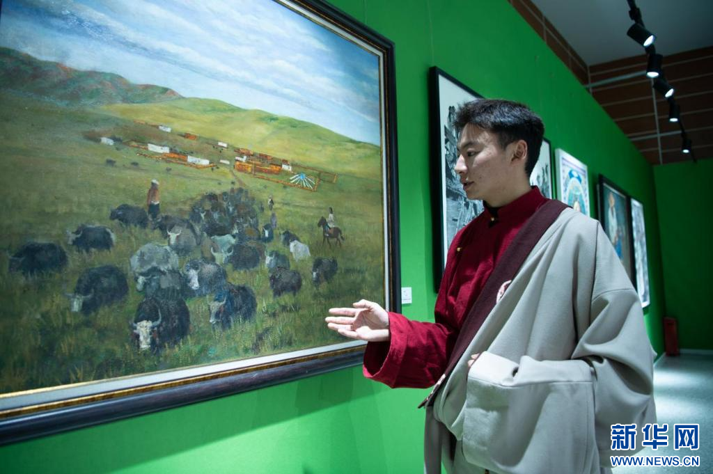 4月28日,第五屆民族團(tuán)結(jié)書(shū)法、美術(shù)、攝影、微視頻大賽作品展現(xiàn)場(chǎng)。新華網(wǎng) 旦增努布 攝