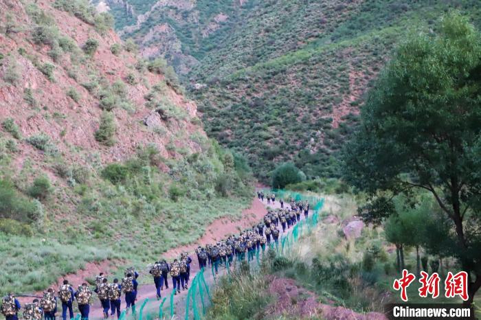消防員負重10公斤,在選定路線奔襲5公里。姚天銳 攝