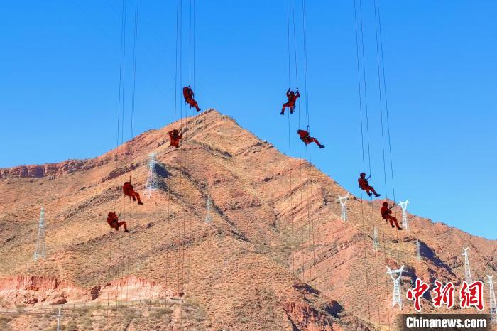 比拼繩索速降。姚天銳 攝