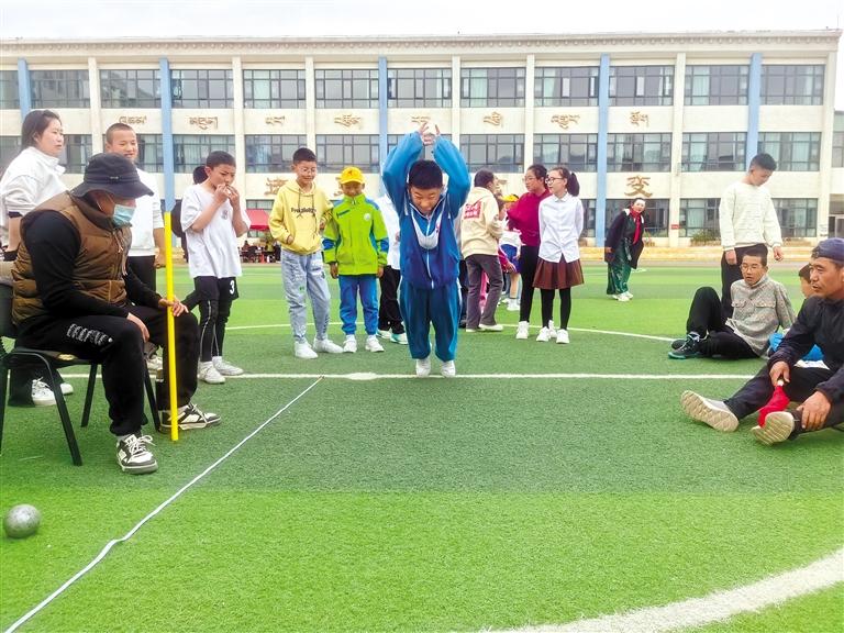 拉薩市第三小學學生參加立定跳遠項目比賽。次仁平措