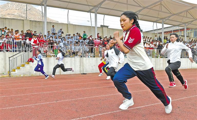 攝拉薩江蘇中學學生參加100米短跑比賽。旦增蘭澤 攝