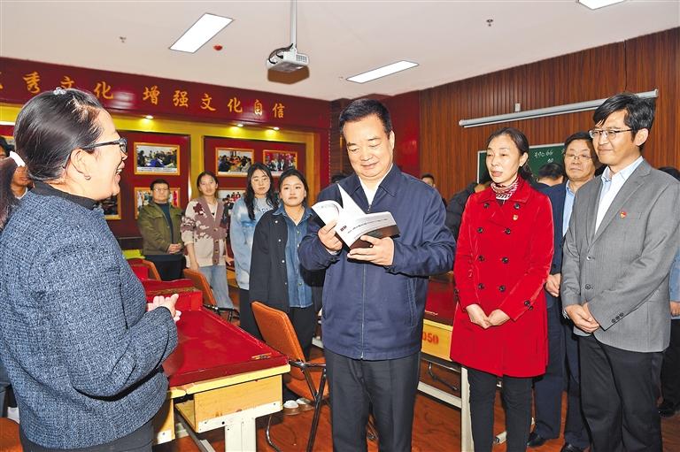 調(diào)研中,王君正指出,師范院校承擔(dān)著為中小學(xué)培養(yǎng)師資的重任,責(zé)任艱巨、使命光榮。要堅持正確辦學(xué)方向,自覺用習(xí)近平新時代中國特色社會主義思想指導(dǎo)學(xué)校建設(shè)辦學(xué)實踐,堅持不懈用馬克思主義中國化最新成果武裝廣大師生頭腦。堅持立德樹人根本任務(wù),圍繞為黨育人、為國育才,遵循教育規(guī)律和人才成長規(guī)律,努力培養(yǎng)德智體美勞全面發(fā)展的社會主義建設(shè)者和接班人。進一步加強師范教育體系建設(shè),聚焦經(jīng)濟社會發(fā)展新任務(wù),積極推進師范教育教學(xué)改革,突出需求導(dǎo)向,促進教育鏈與人才鏈、產(chǎn)業(yè)鏈、創(chuàng)新鏈深度融合,提高辦學(xué)質(zhì)量和辦學(xué)效益。高度重視教師隊伍建設(shè),把師德師風(fēng)建設(shè)擺在首要位置,提高教師培養(yǎng)培訓(xùn)質(zhì)量,培養(yǎng)造就一支師德高尚、業(yè)務(wù)精湛、結(jié)構(gòu)合理的高素質(zhì)專業(yè)化教師隊伍。