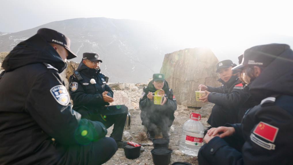 經(jīng)過4個多小時的高海拔行走,巡邊隊伍終于到達了6000米的巡邏折返點位,也到了巡邏路上的快樂時刻,吃火鍋!“現(xiàn)在后勤保障到位,無論在野外何處,吃頓熱飯已不是難事”,帶隊的副所長次仁加措說道。