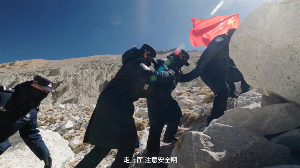 一路上,巡邏隊經(jīng)過了冰塔林、冰川,穿越了碎石灘,“踏上路程的時候是有點緊張和忐忑的,因為感覺其實這路很爛,全是亂石堆,就很害怕自己沒辦法堅持下來,因為從來沒有到過海拔這么高的地方”,新警彭莉緊張地說道。