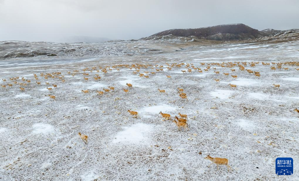 藏羚羊在向產(chǎn)羔地遷徙(無人機照片,5月10日攝)。新華社記者 丁增尼達 攝