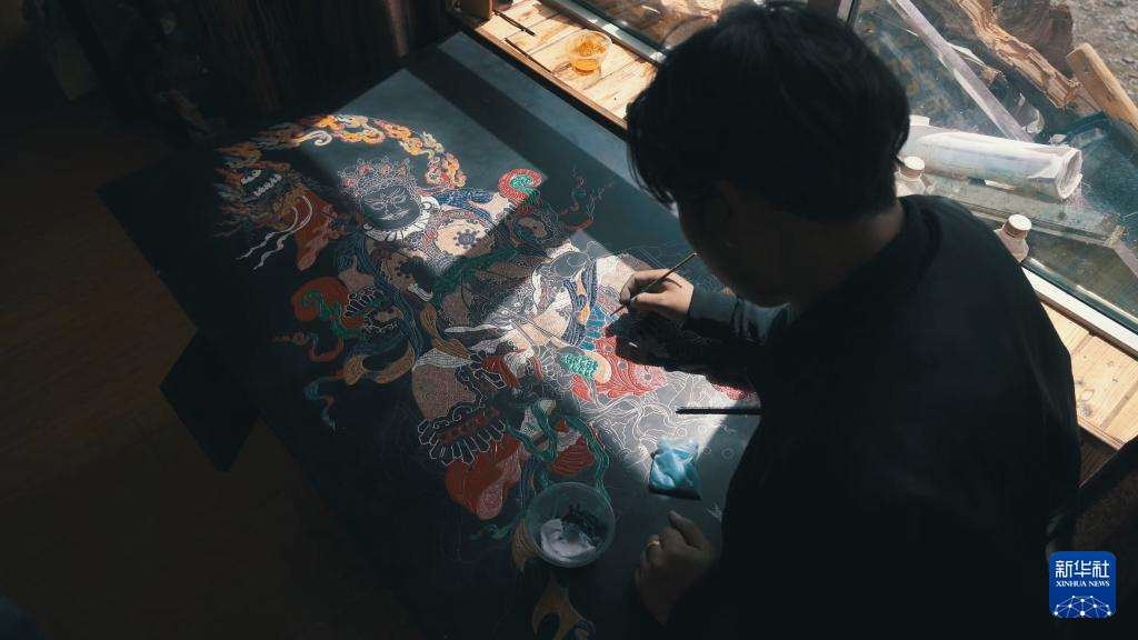 “漆畫的表現(xiàn)是自由的、包容的,可以實現(xiàn)唐卡想要的多種效果!”隨著學習深入,仁青郎加對唐卡漆畫的理解更深了一分。