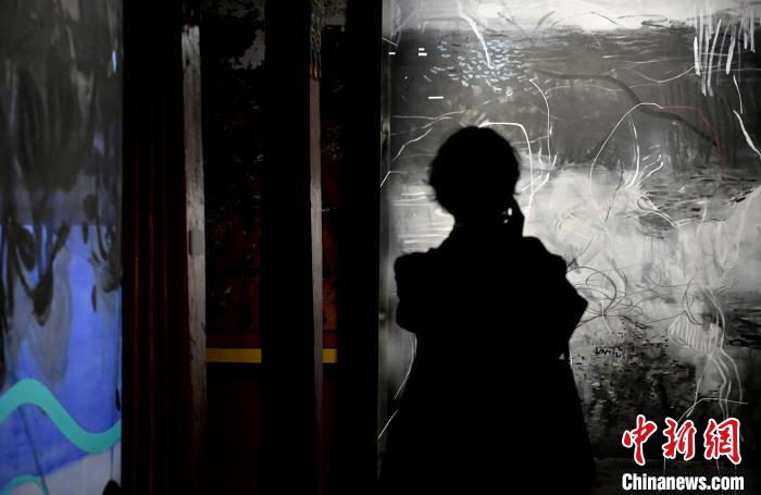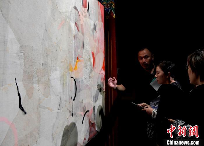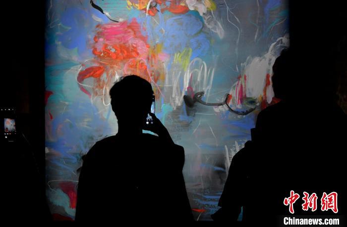 圖為觀眾正在欣賞展覽中的作品。李林 攝
