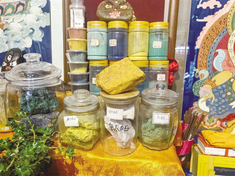 唐卡非遺文創(chuàng)體驗館中的傳統(tǒng)礦物顏料。