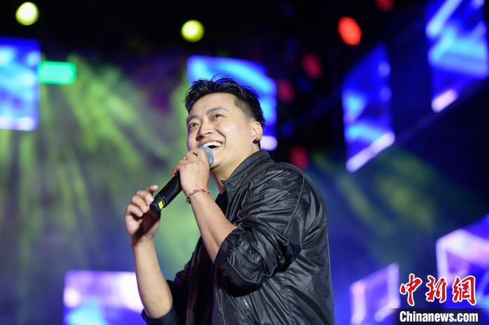 圖為歌手羅布桑珠正在演唱歌曲《美麗星球》。貢嘎來(lái)松 攝