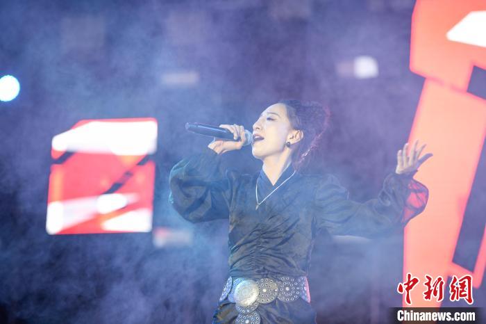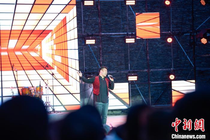 圖為歌手巴金旺甲正在演唱歌曲《故鄉(xiāng)》。貢嘎來(lái)松 攝