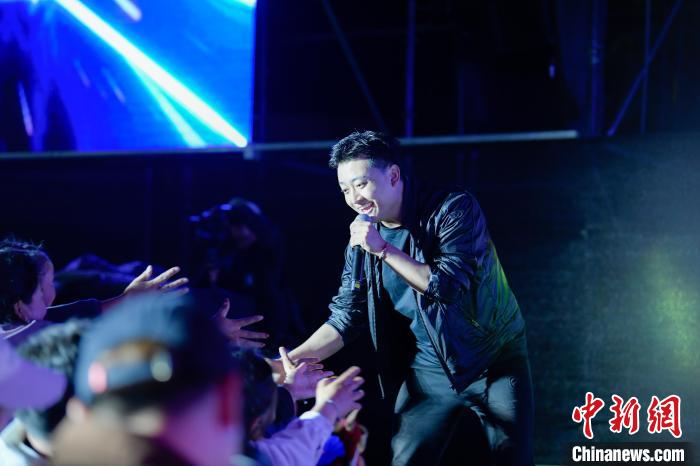 圖為歌手羅布桑珠跟觀眾互動(dòng)。貢嘎來(lái)松 攝